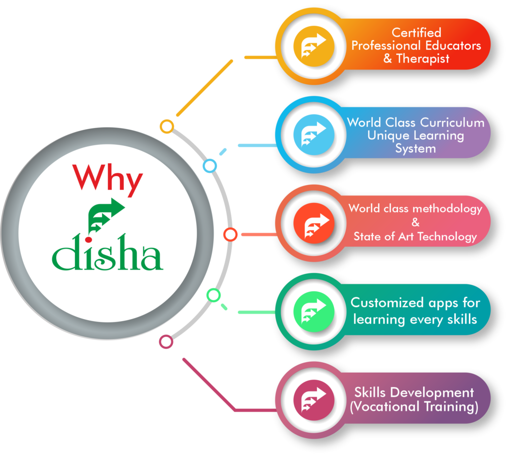 Disha Therapy Centre for Autism & Developmental Disabilities is one of the Centres of Excellence for Autism and developmental disabilities in the country. The Centre provides all the required therapies by a highly committed team of qualified, trained and certified professionals under one roof. Disha has created its own benchmark by adopting evidence – based practices, World-class methodologies and State of the Art technology for each therapy. Disha follows a highly structured individualized education and therapy program based on each child’s developmental needs and strengths. Disha makes use of a large number of Apps for teaching by the Special Educators and Therapists. Disha is one of the first Autism Centres in the country who adopted the latest US curriculum (Unique Learning System) and for its implementation all the professionals of Disha are trained by an Expert Trainer from the USA. Disha is using Speech Generating (AAC) Devices for our children who are non-verbal or speak a few words.
